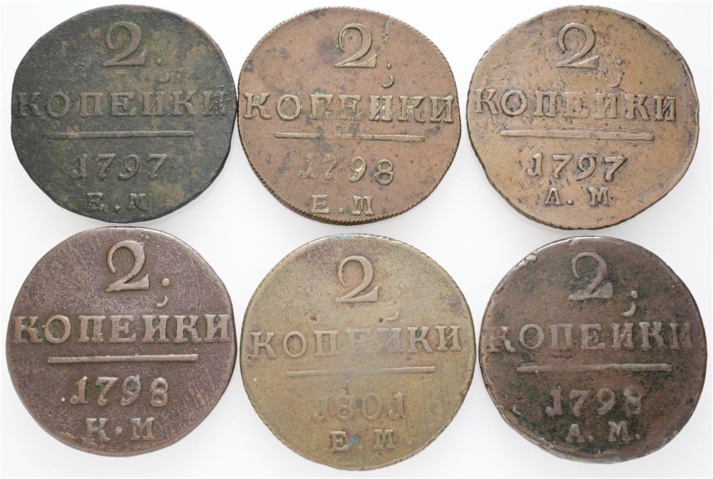 Collection of 2 Kopecks 1797 - 1801, all different. (6)