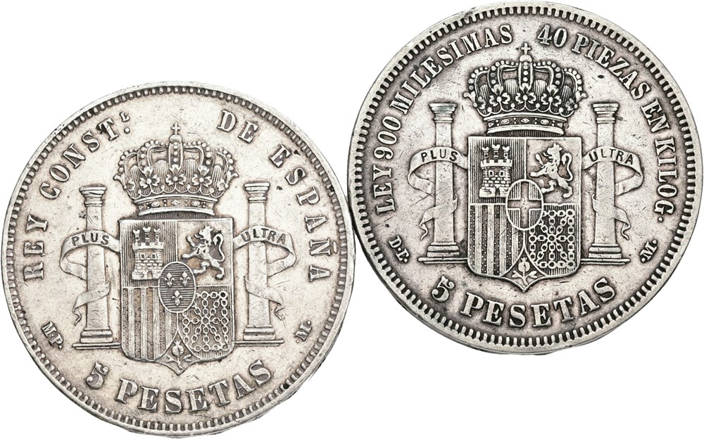 - 5 Pesetas 1871 (74), 1888 (88). (2) (16209423)