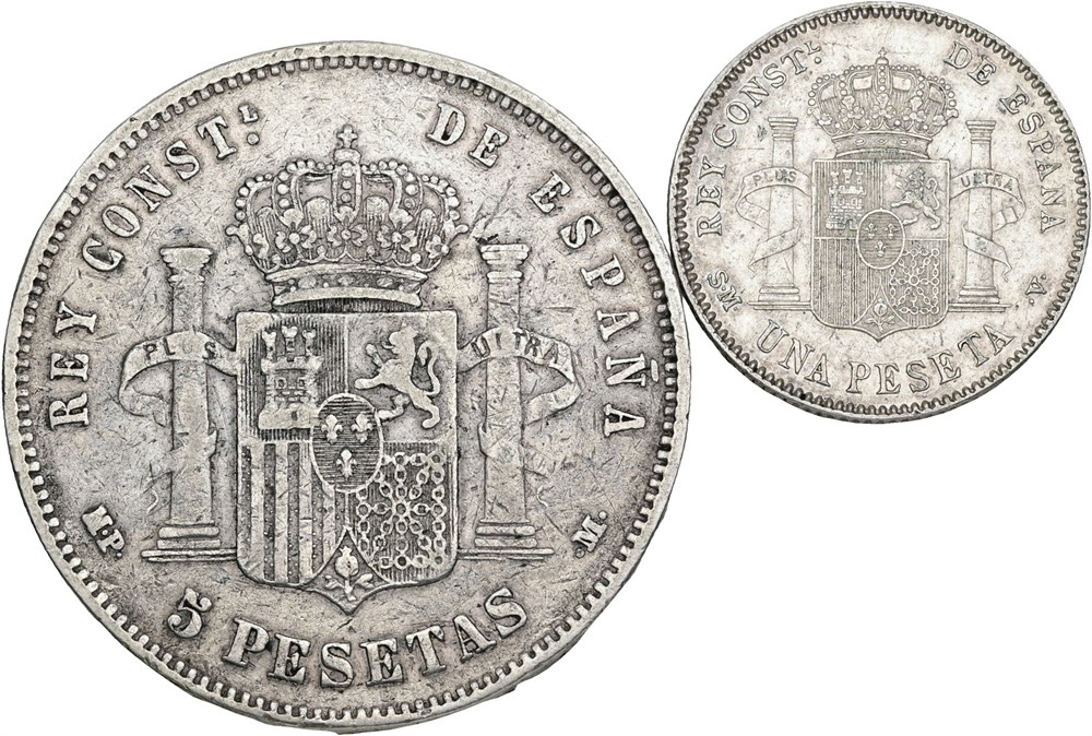 - 1 Peseta 1900; 5 Pesetas 1888. (2) (16209563)