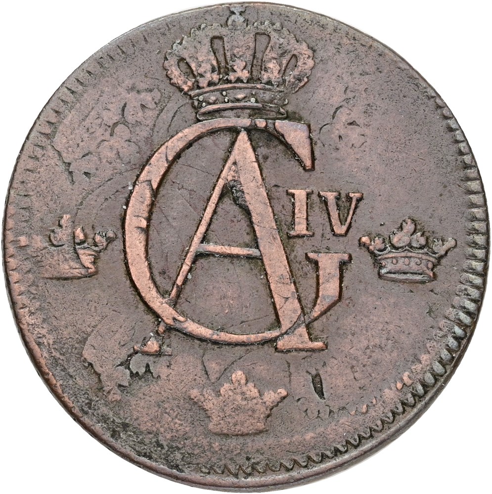 1/2 skilling 1802, overpræget på 1 öre 1749 - ses tydeligt.