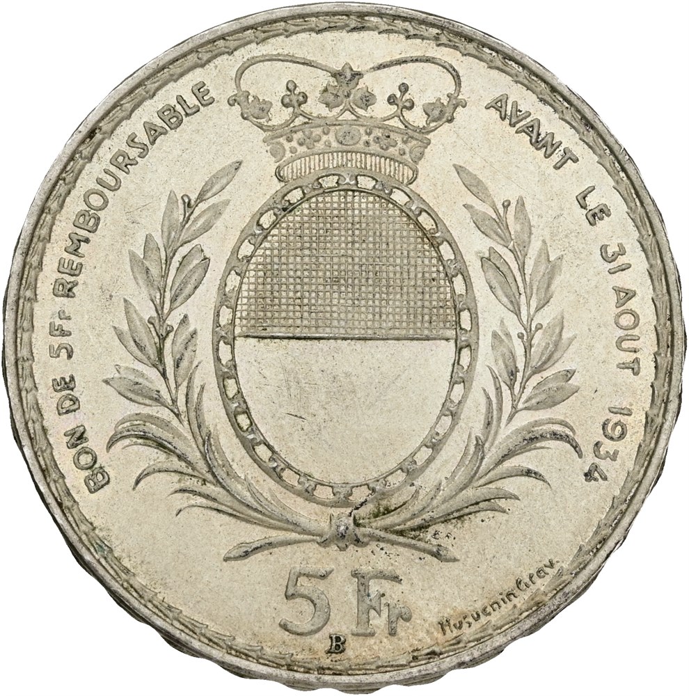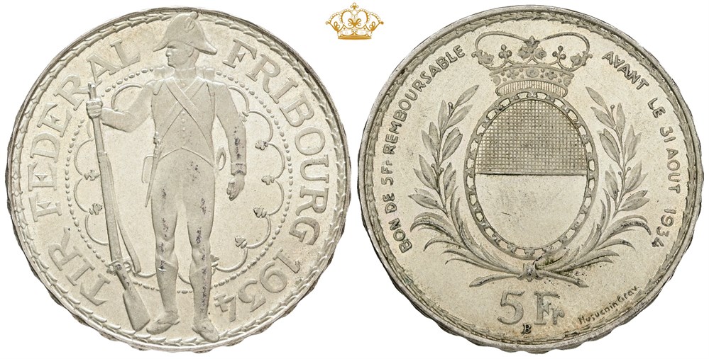 5 Franken 1934, prooflike character, dark spots on soldier.