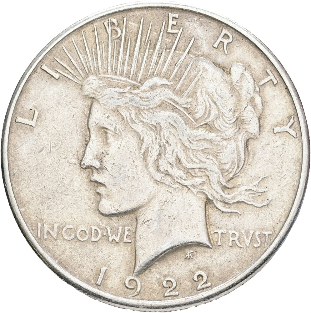 Dollar 1922 S, lightly cleaned.