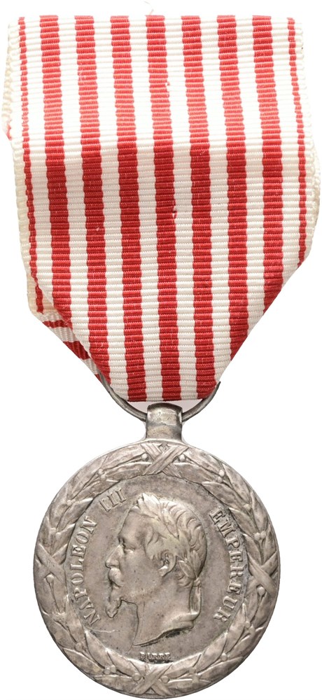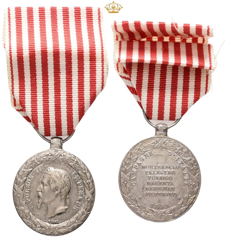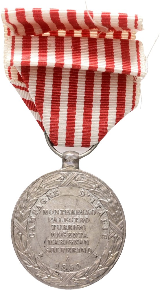 Commemorative medal of the 1859 Italian Campaign, "Campagne d'Italie 1859", Ag, 30 mm, with unoriginal ribbon but without pin.