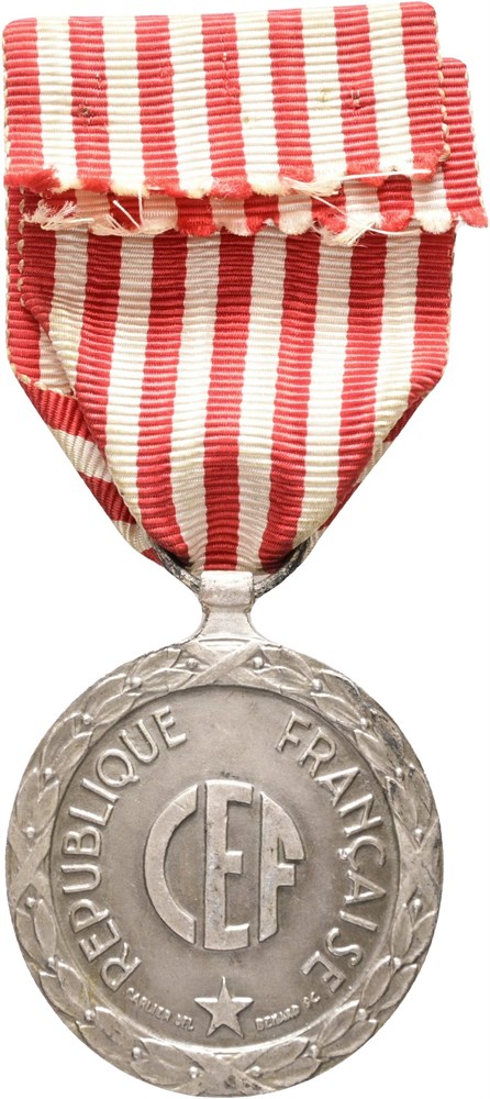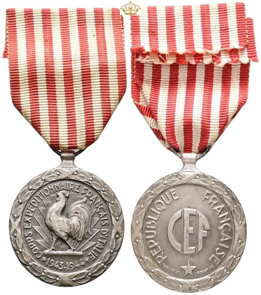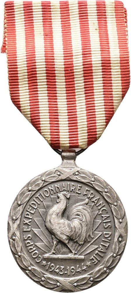 The Italian Campaign Medal 1943-1944, "Corps Expeditionnaire Français d'Italie 1943-1944", silvered Ae, 36 mm, planchet flaws at edge, with ribbon but without pin.