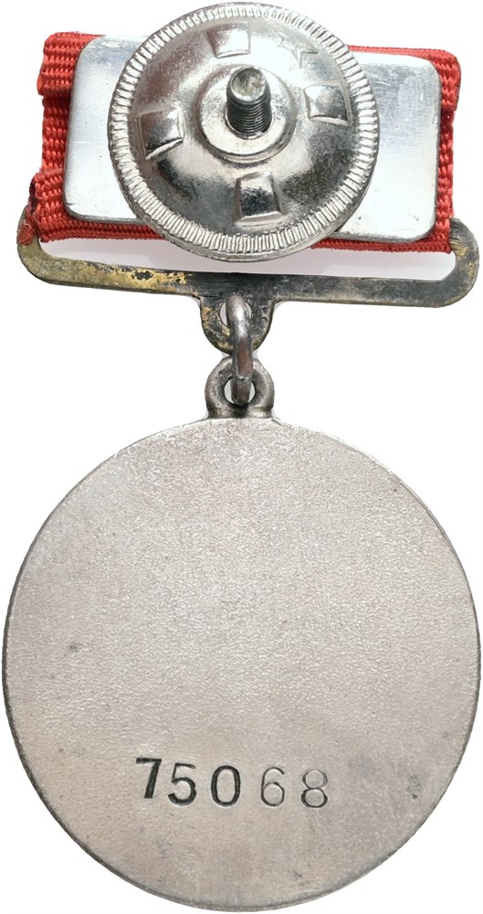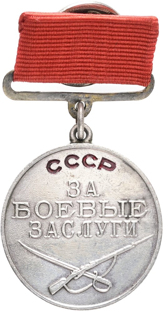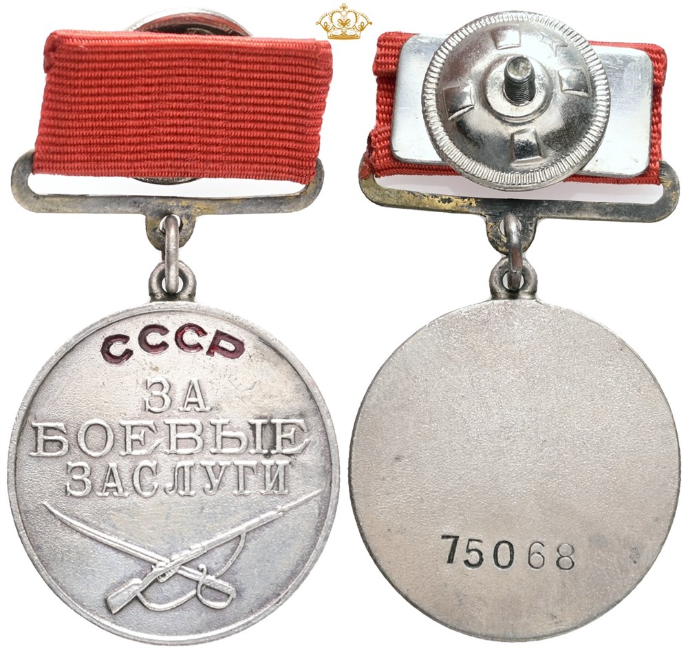 Medal For Battle Merit, "За боевые заслуги", Ag with red enamel, 32 mm, stamped no. "75068" on the reverse, with ribbon.