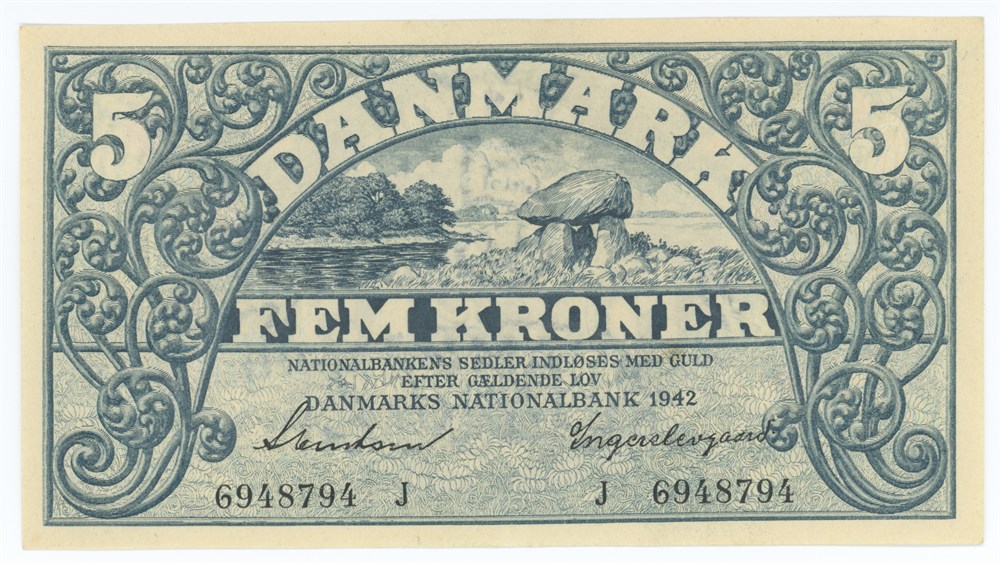 5 kroner 1942 J, nr. 6948794, Svendsen / Ingerslevgaard.