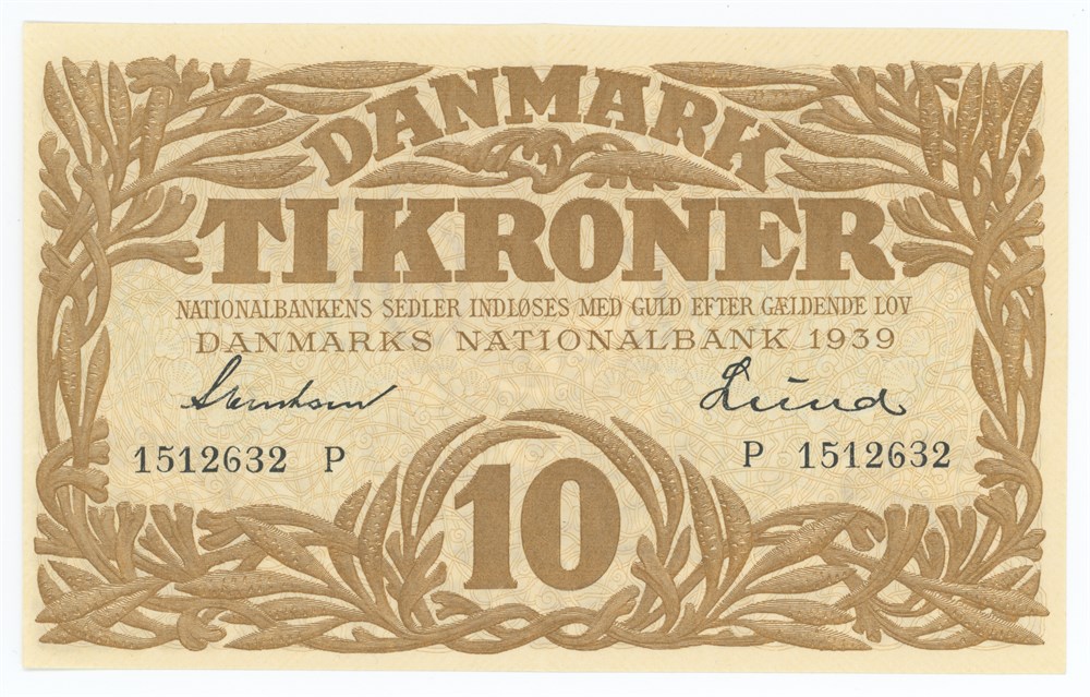 10 kroner 1939 P, nr. 1512632, Svendsen / Lund.