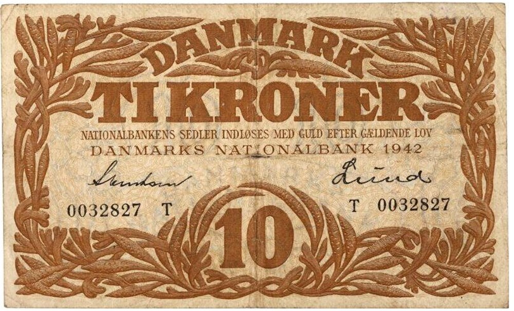 10 kroner 1942 T, nr. 0032827, Svendsen / Lund.