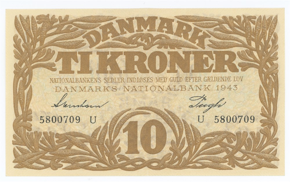 10 kroner 1943 U, nr. 5800709, Svendsen / Pugh.
