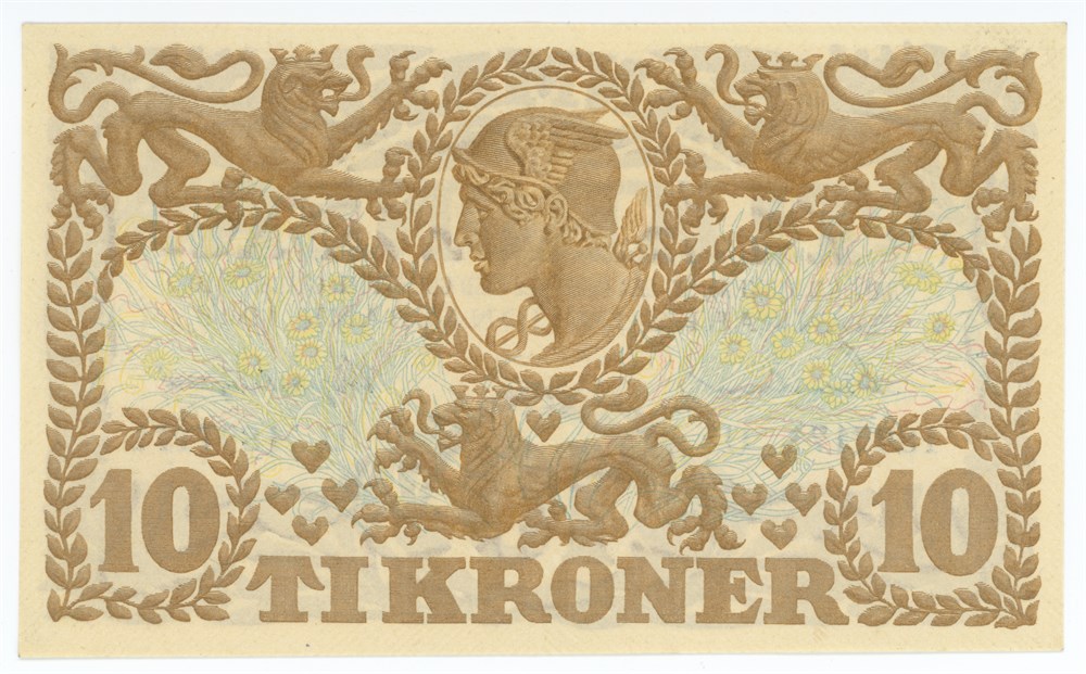 10 kroner 1943 U, nr. 1897171, Svendsen / Ingerslevgaard.