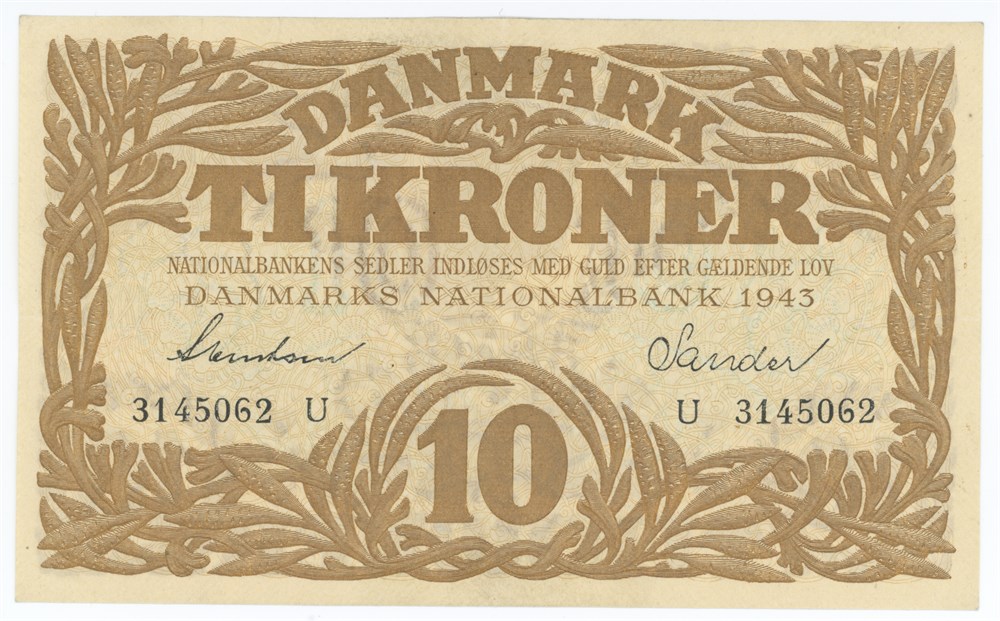 10 kroner 1943 U, nr. 3145062, Svendsen / Sander.