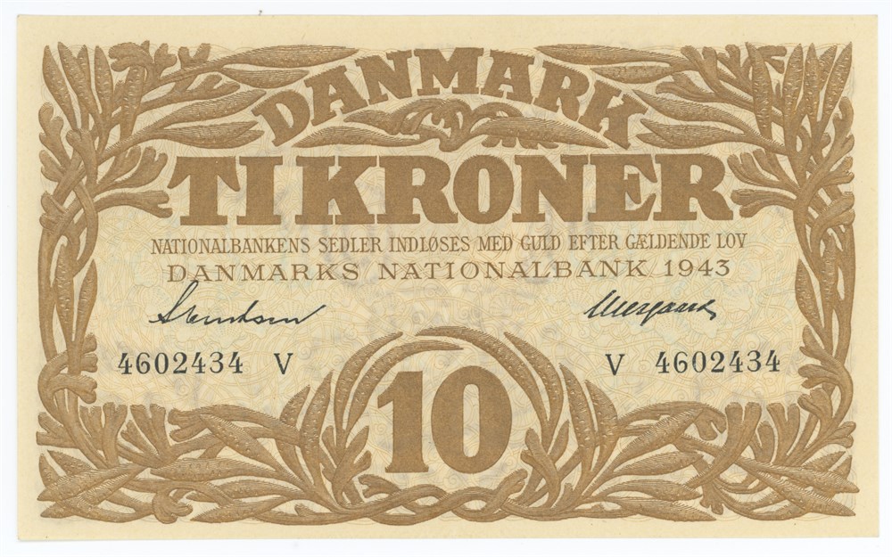 10 kr 1943 V, nr. 4602434, Svendsen / Neergaard
