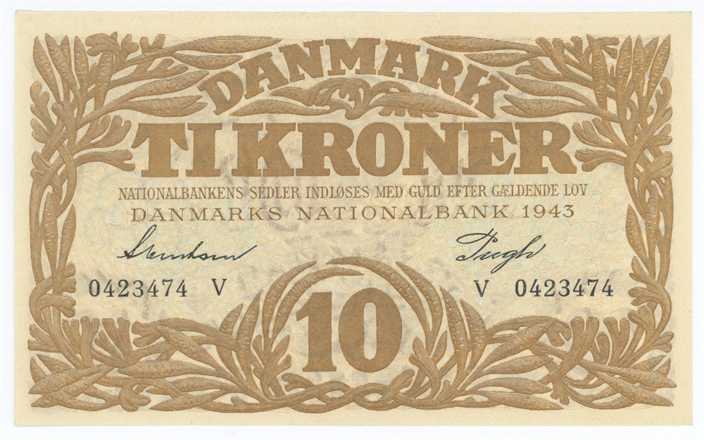 10 kr 1943 V, nr. 0423474, Svendsen / Pugh