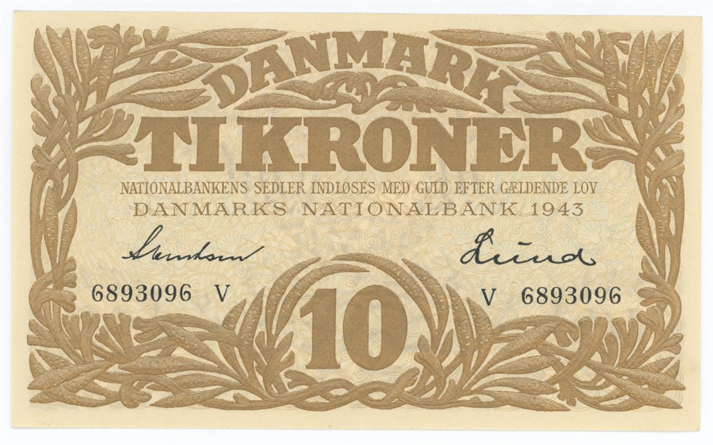 10 kroner 1943 V, nr. 6893096, Svendsen / Lund