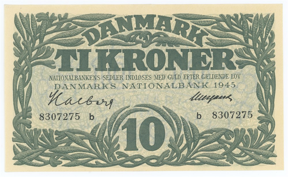 10 kr 1945 b, nr. 8307275, Halberg / Neergaard