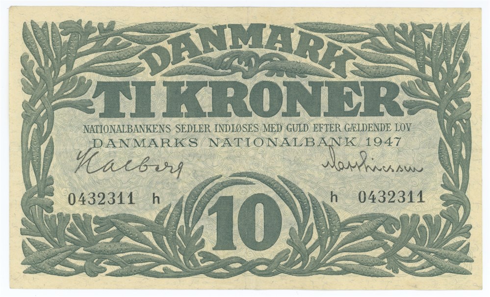 10 kroner 1947 h, nr. 0432311, Halberg / Matthiessen.