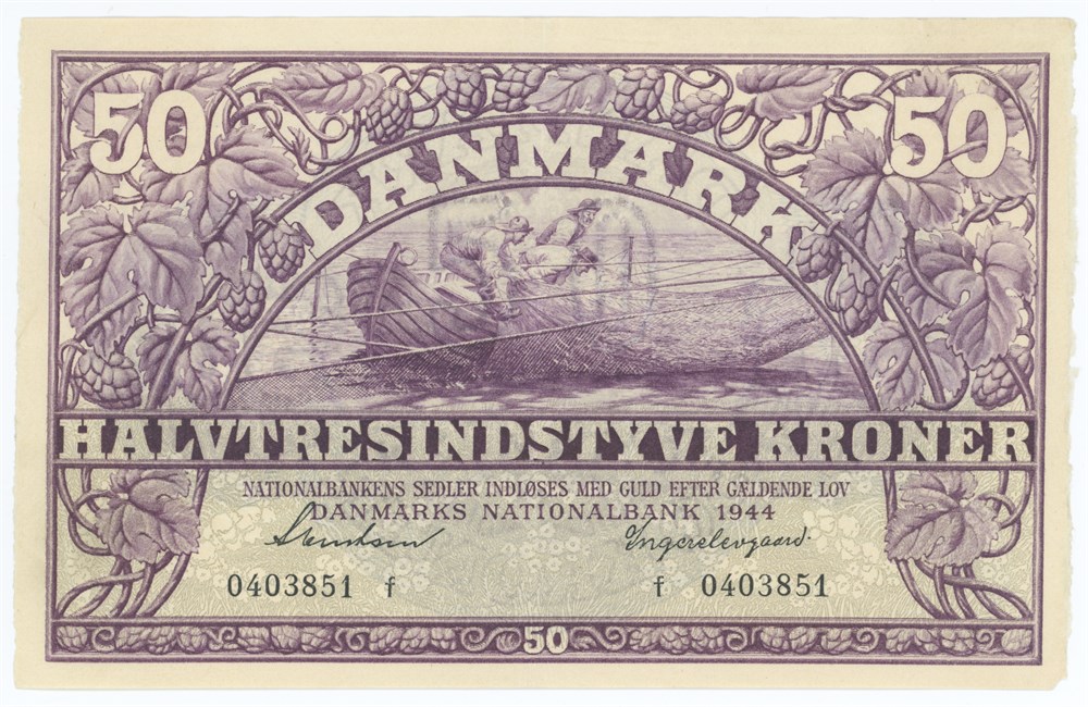 50 kroner 1944 f, nr. 0403851, Svendsen / Ingerslevgaard.