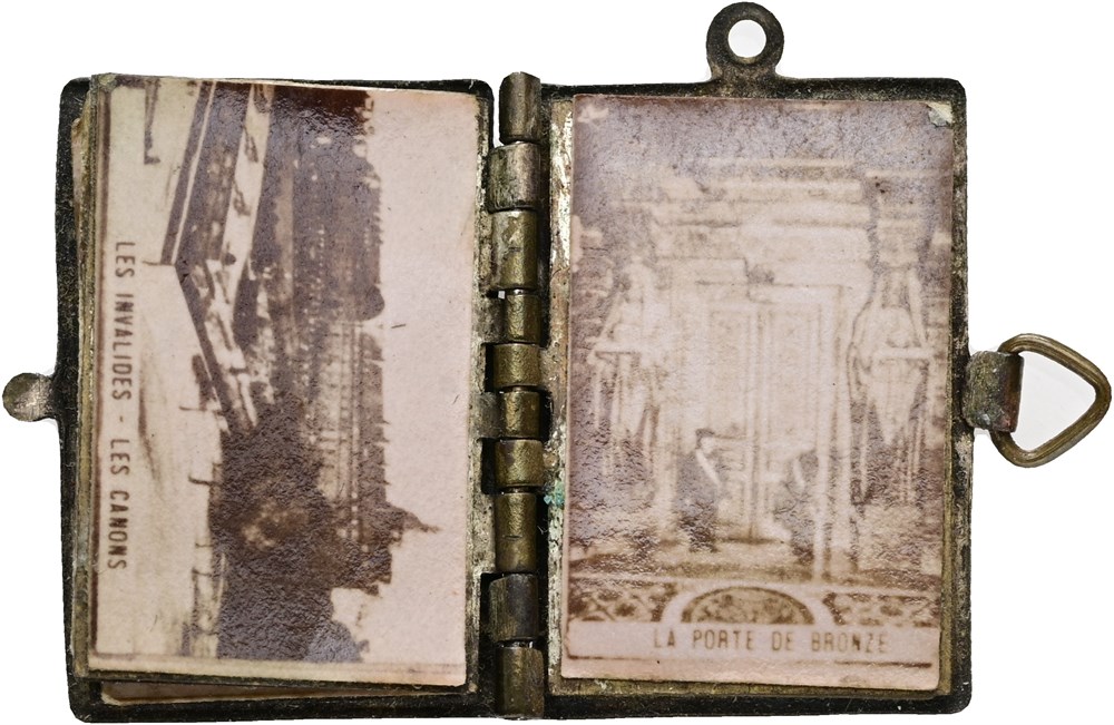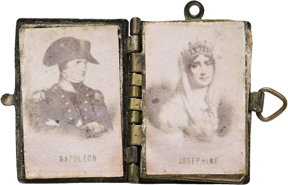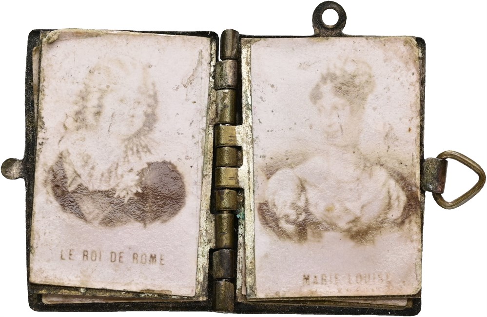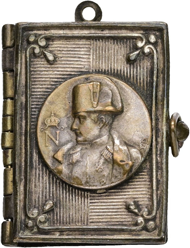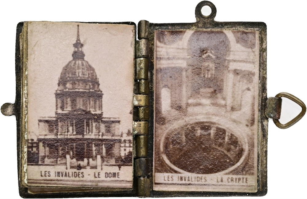 Miniature Ae booklet with Napoleon I containing eight black and white 'pictures' of places and royal people, 25x19 mm