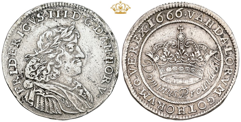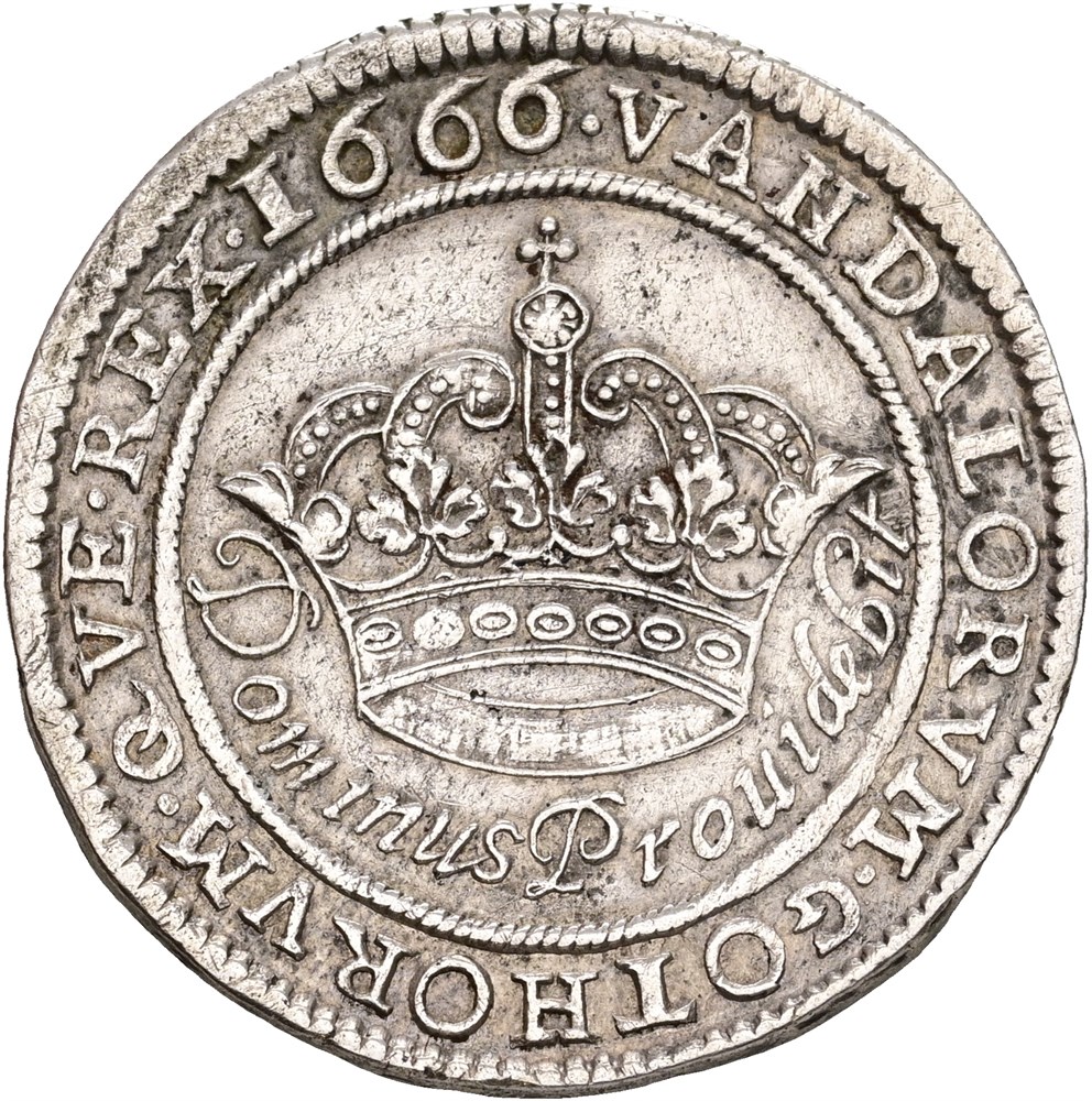 2 mark 1666, ualmindelig type uden GK ved kronen.