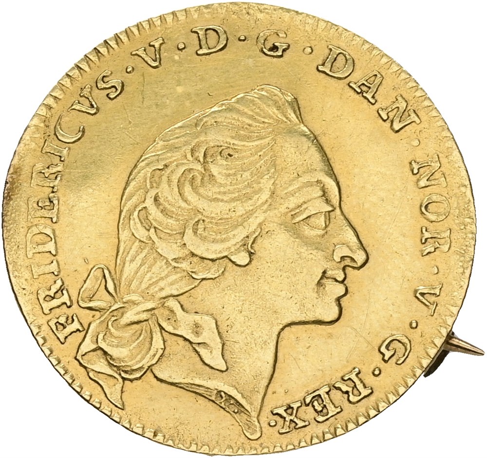Kurantdukat / 12 mark 1758 W/VH, monteret som broche.
