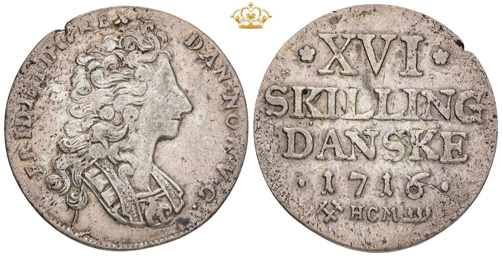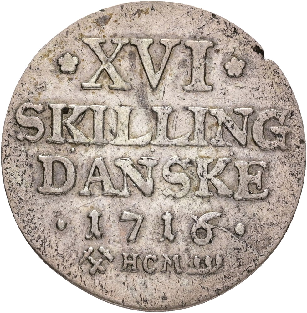 Mark / 16 skilling 1716, blanketfejl i rand.