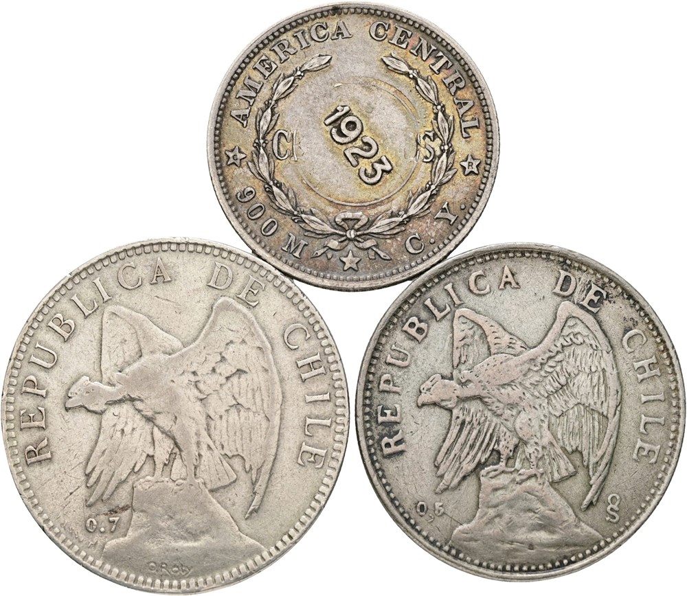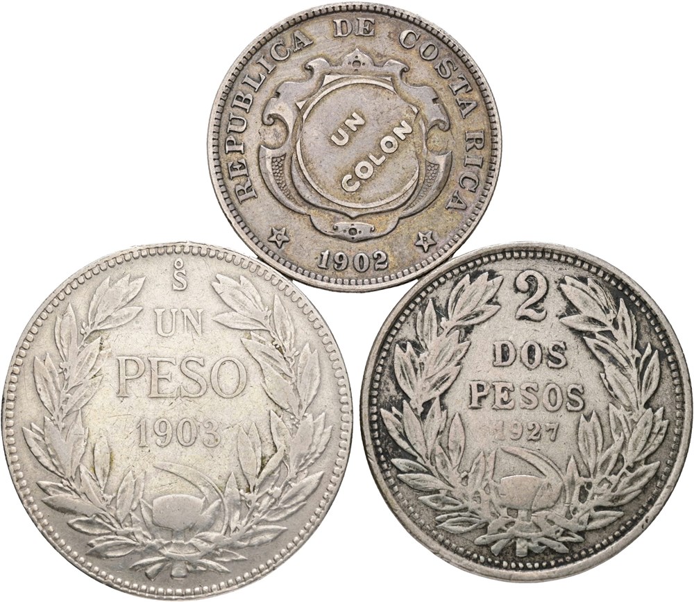Chile, Peso 1903; 2 Pesos 1927; Costa Rica, Colon 1923. (3)