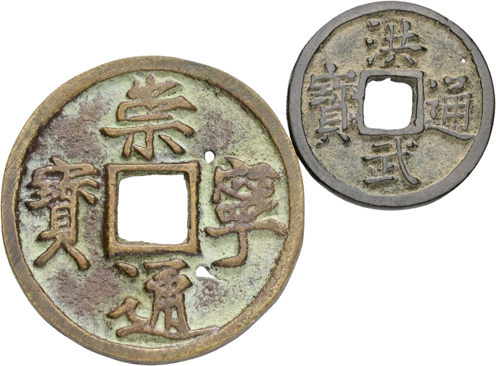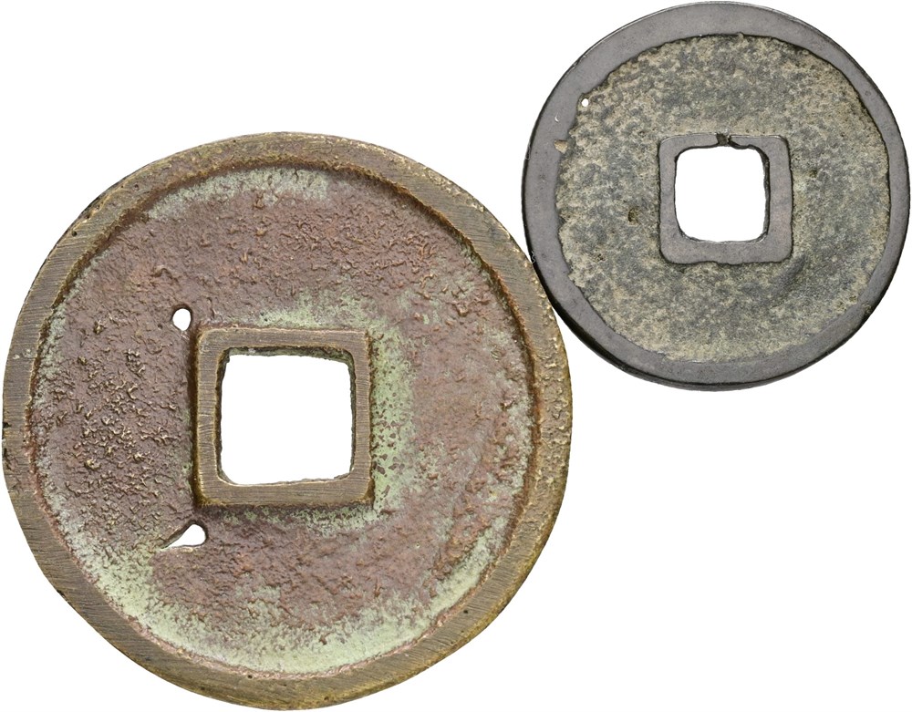 Hui Zong (1101-1125), 10 Cash ND, "Chong Ning Tong Bao", 38 mm; Hong Wu (1368-1398), Cash ND, "Hong Wu Tong Bao", 23 mm. (2)