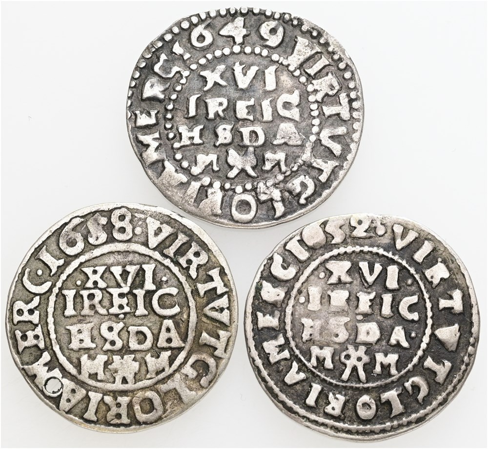 1/16 rigsdaler 1649, 1652, 1658. (3)