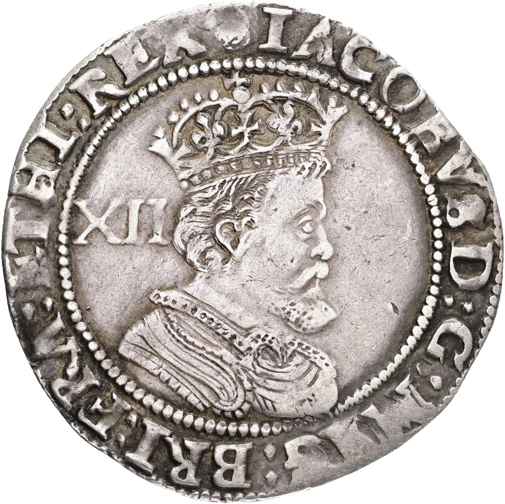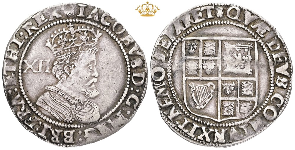 Third Coinage, Shilling (1620-1624), mm Rose / Thistle mule, slightly bent.