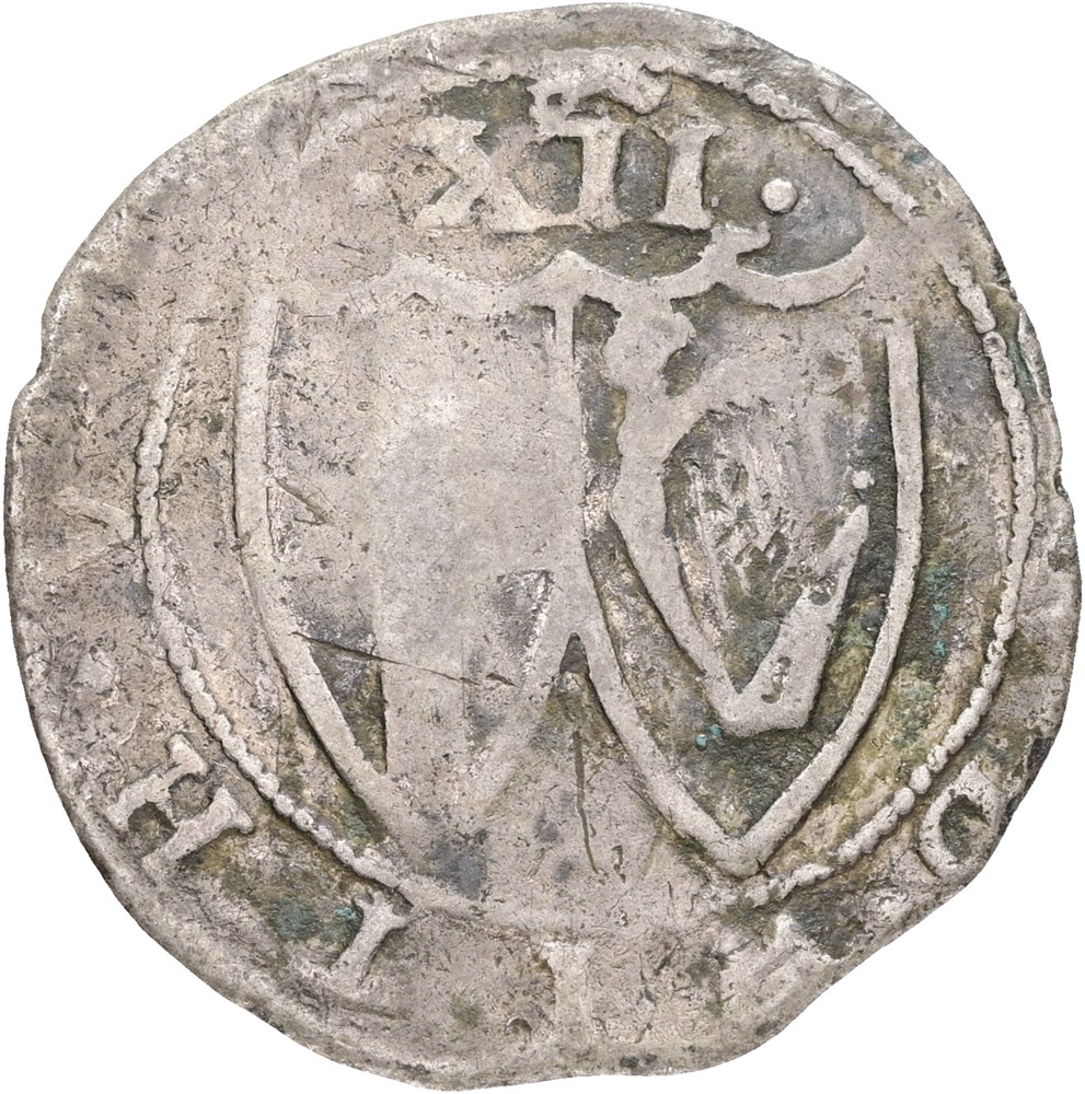 Shilling, date not visible, edge loss.