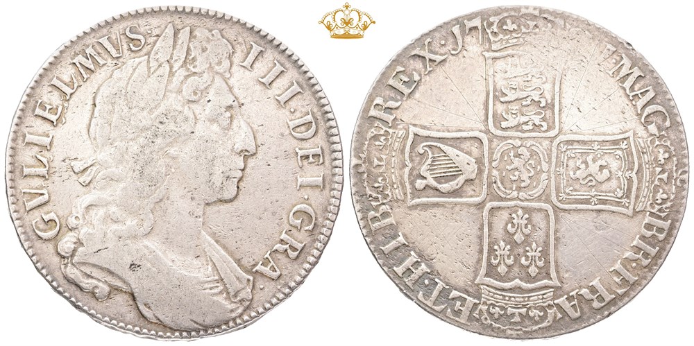 Halfcrown 1701, D. TERTIO, scratches on reverse.
