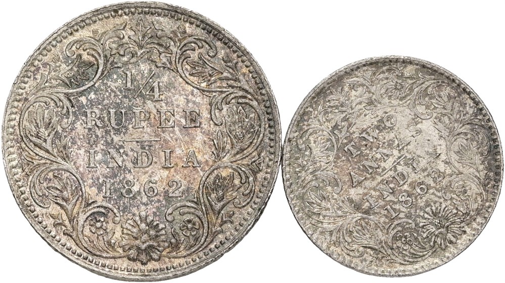 - 2 Annas 1862; 1/4 Rupee 1862. (2) (16488855)