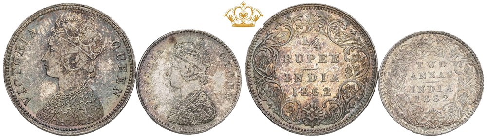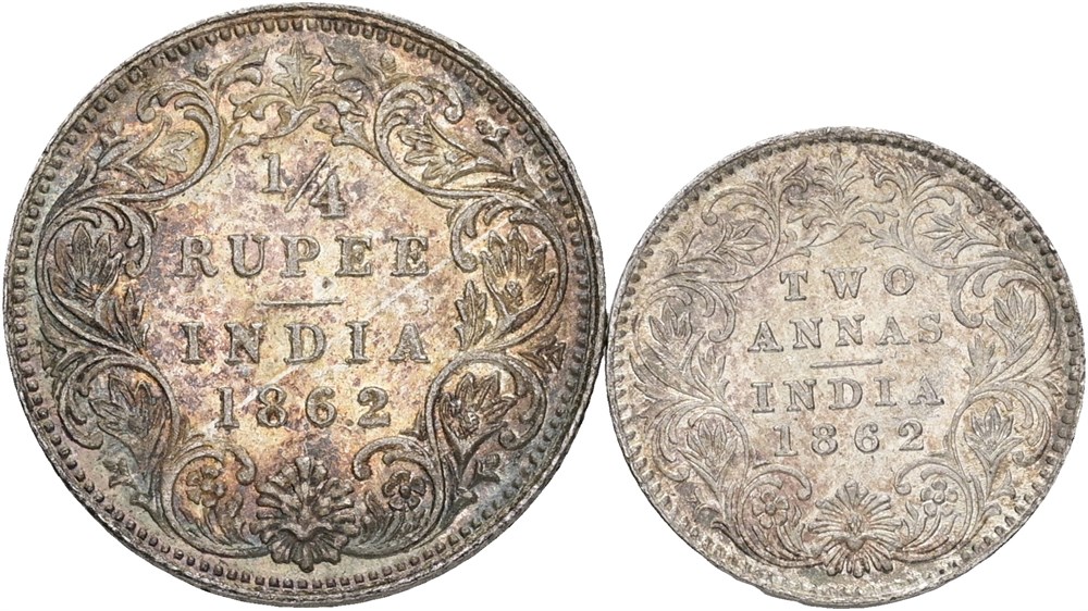 2 Annas 1862; 1/4 Rupee 1862. (2)