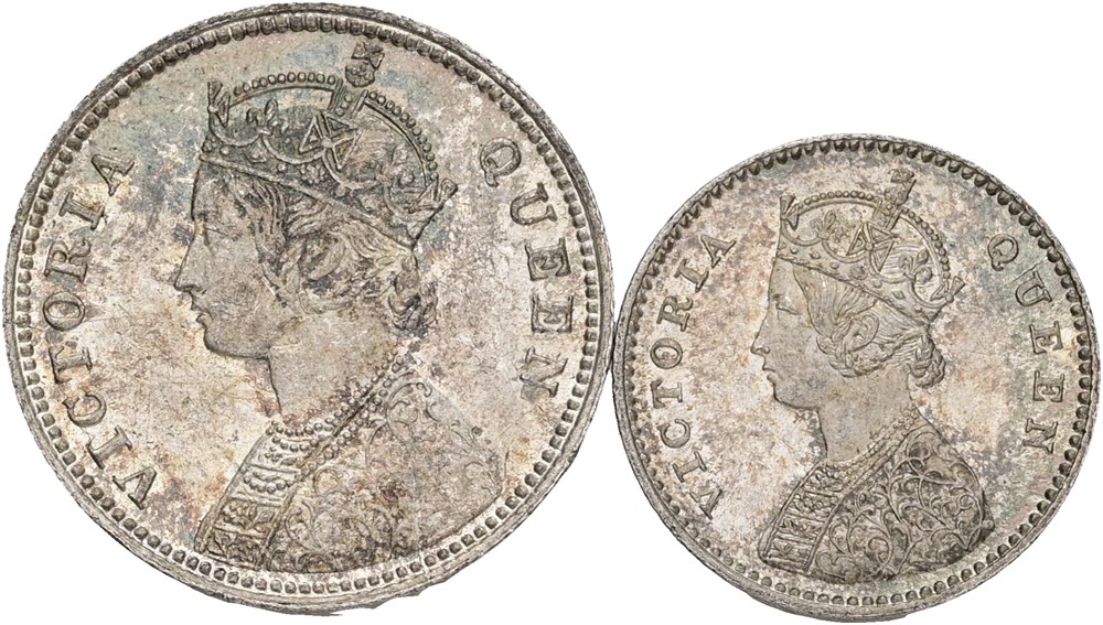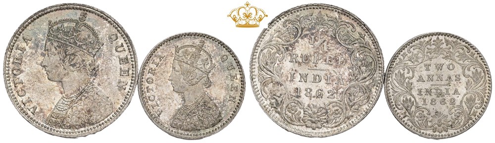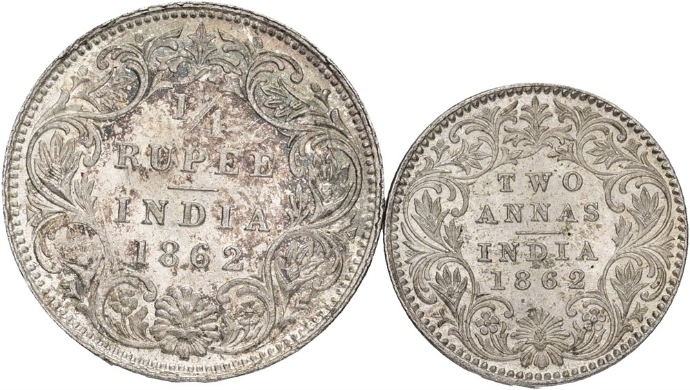 2 Annas 1862; 1/4 Rupee 1862. (2)