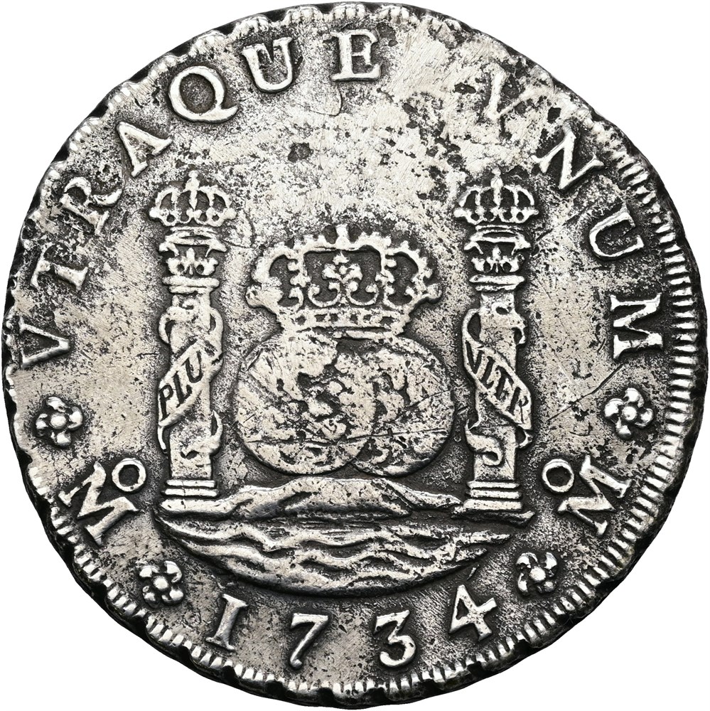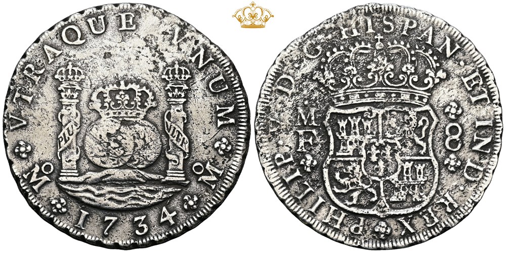 8 Reales 1734 Mo MF, corr. - probably salvaged from a shipwreck.