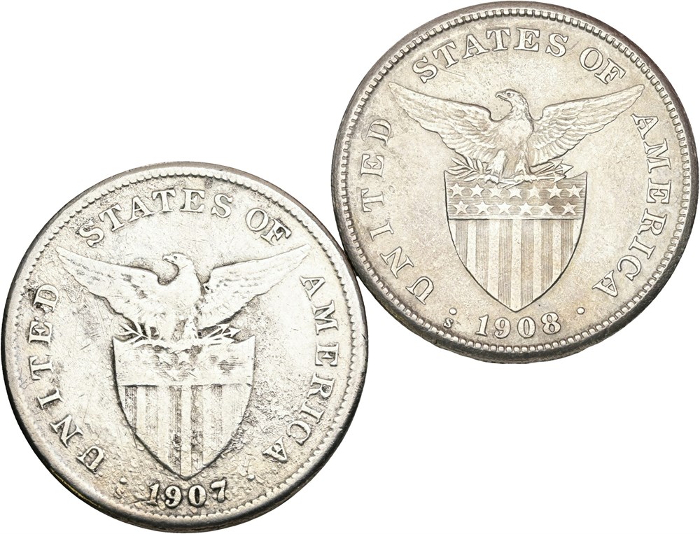 Peso 1907 S, 1908 S. Cleaned. (2)