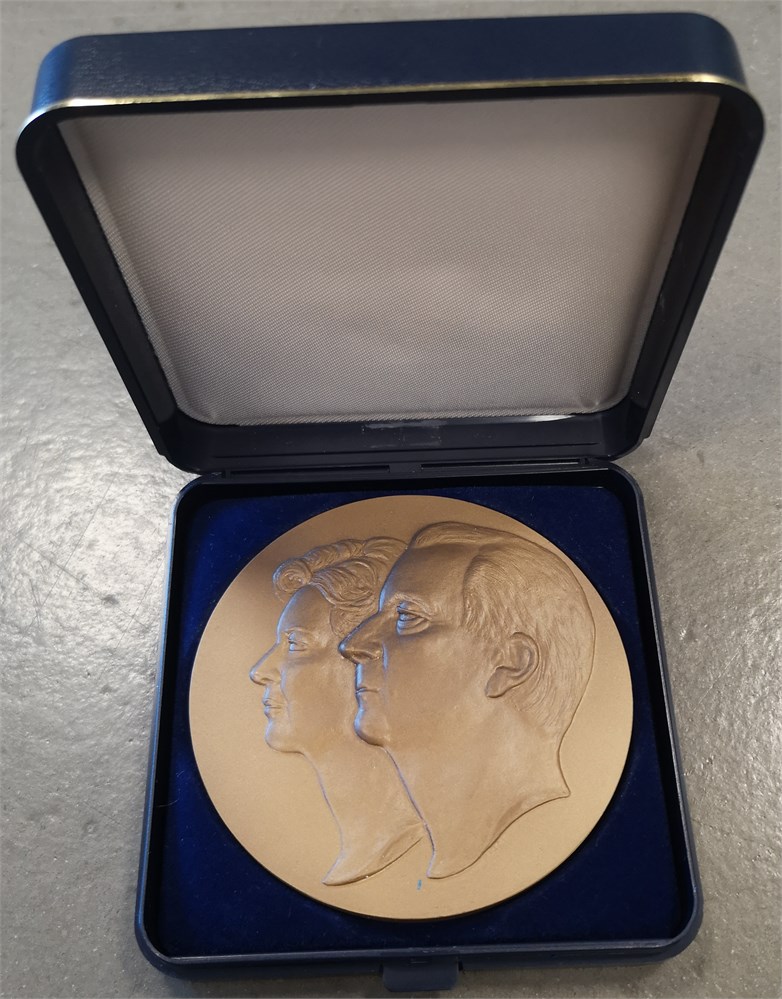 King Albert II and Queen Paola of Belgium, ND, Ae, 70 mm - in original box of issue