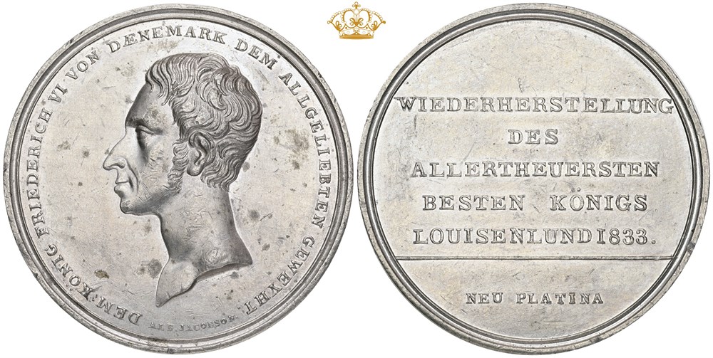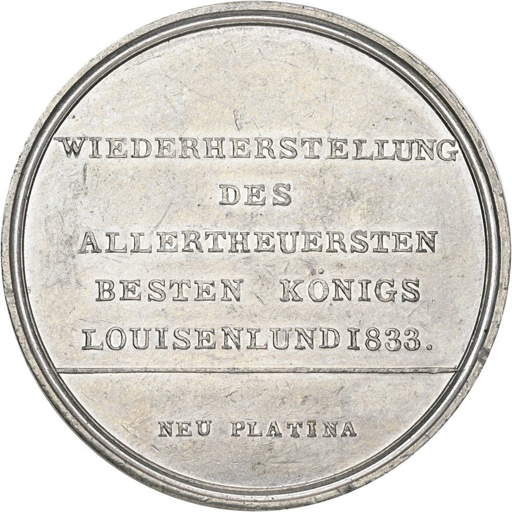 Kongens helbredelse, 1833, af A. Jacobson, neu platina, 55 mm.