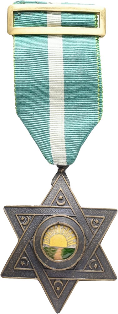 Order of Mehdauia, enameled Ae, 54x41 mm, with ribbon, broken pin.