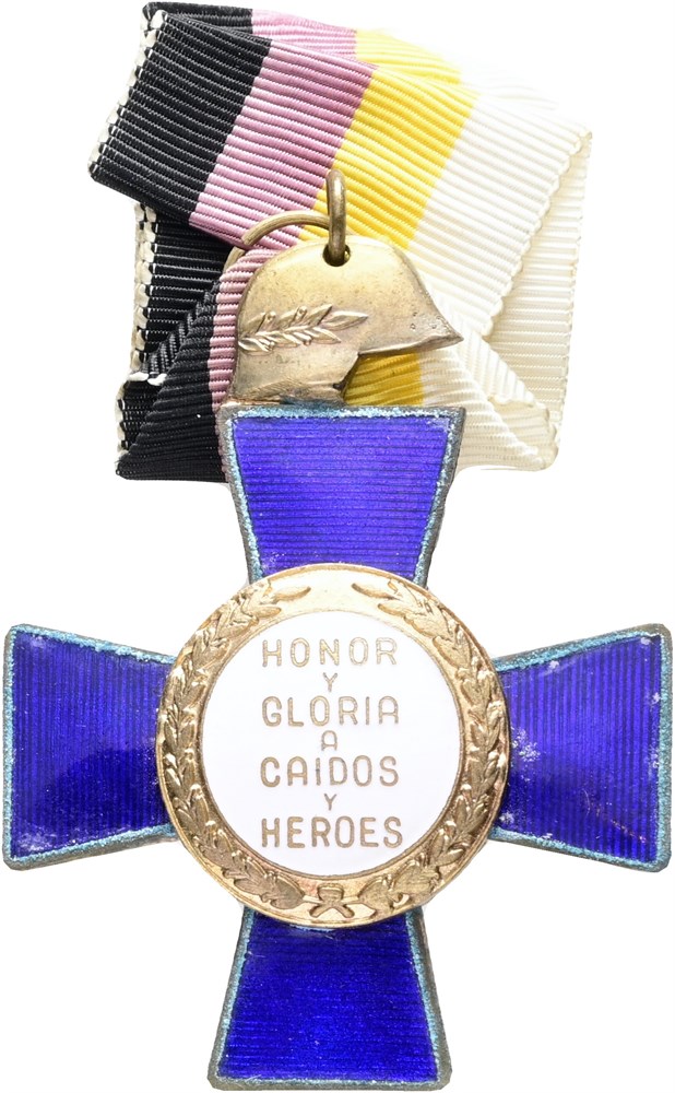 Cross of the 25 Years of Peace, 1964, gilt and enameled Ae, 58x46 mm, with ribbon but without pin, corr.
