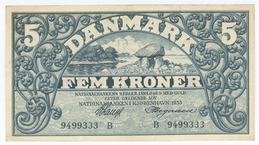 5 kroner 1935, nr. 9499333 B, V. Lange / Heegaard