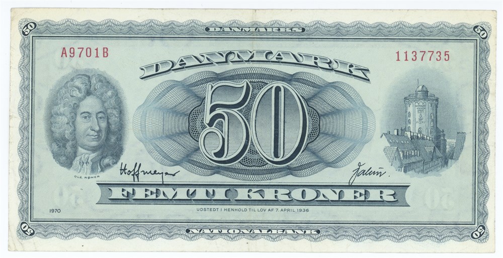 50 kroner 1970 A9, nr. 1137735, Hoffmeyer / Valeur.