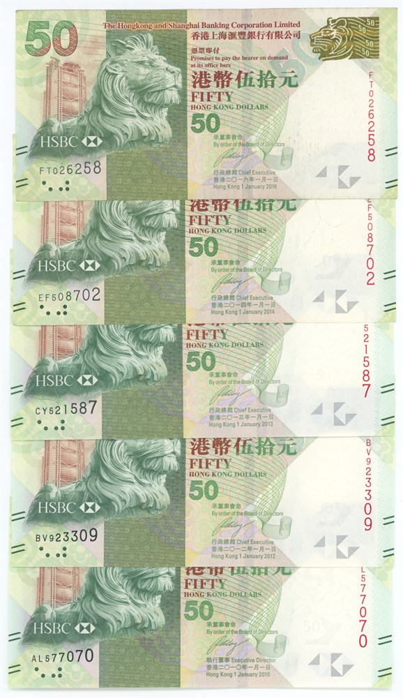 50 Dollars 2010-2016, 5 pcs. (5)