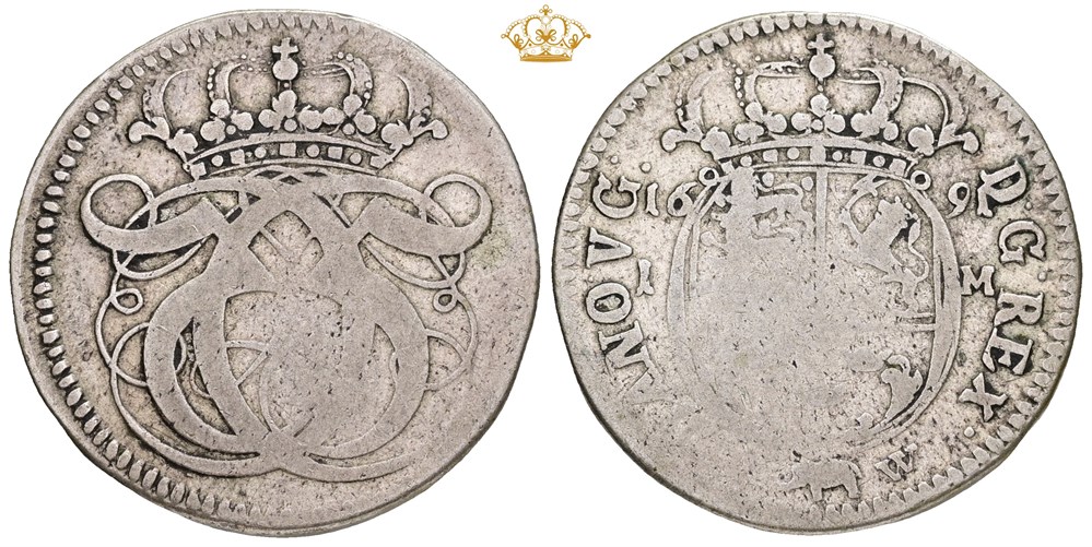Mark 1691, delvist svagt præget.