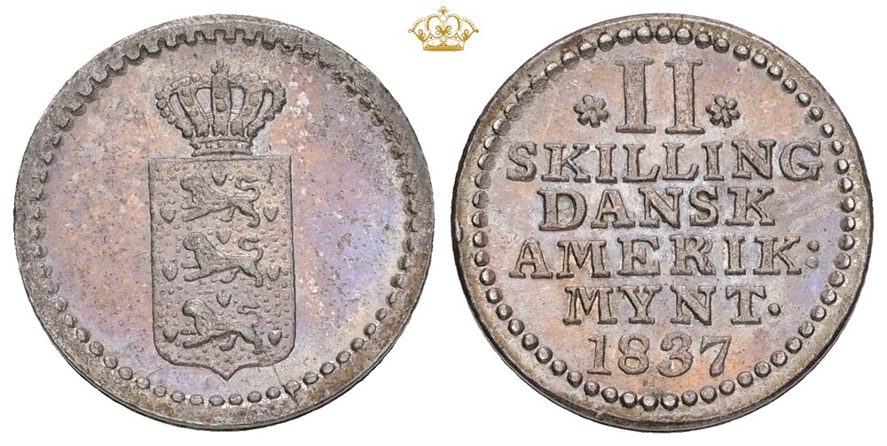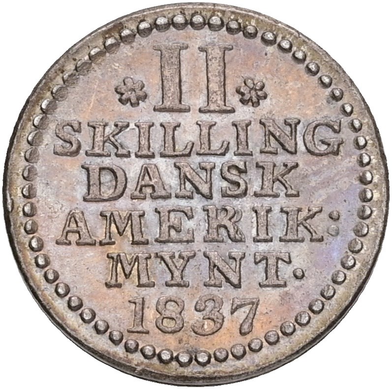 2 skilling 1837 - smukt tonet eksemplar