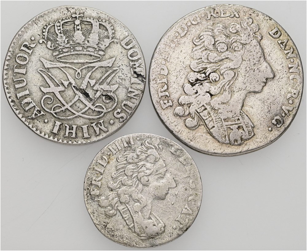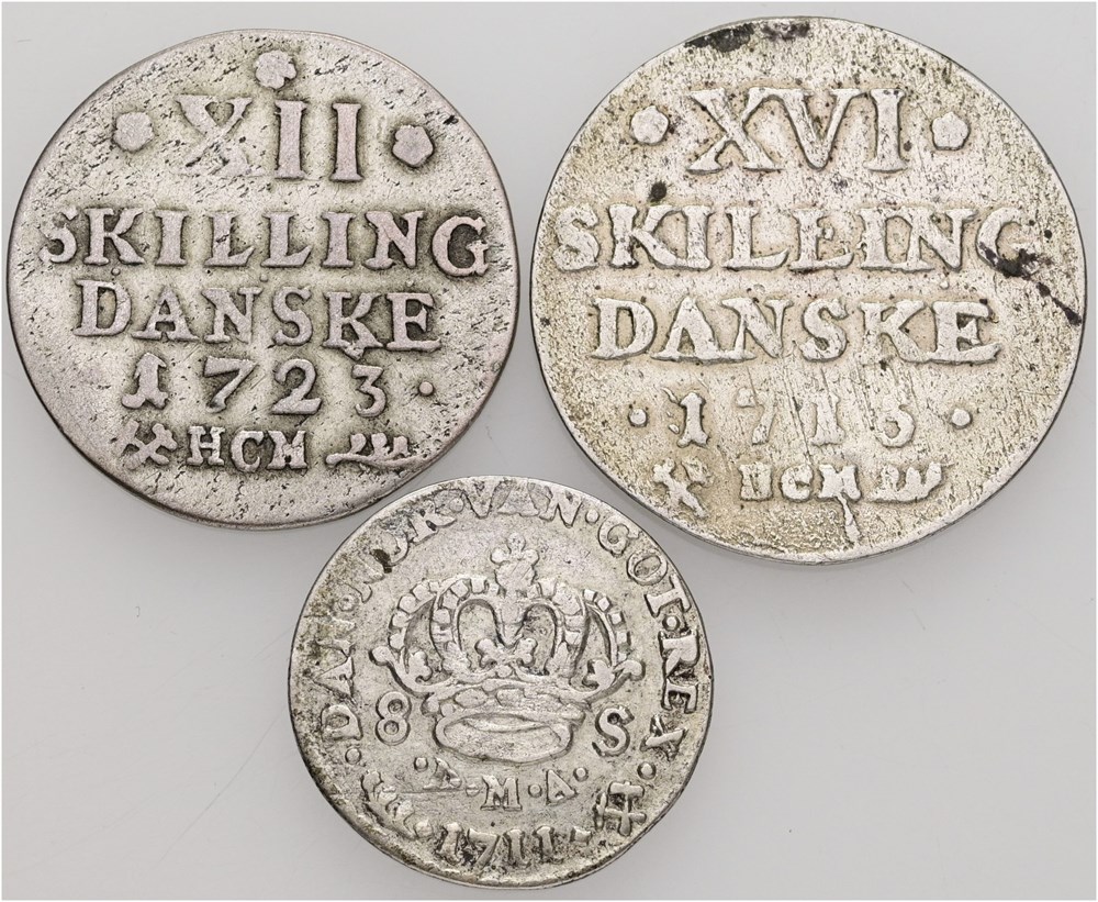 8 skilling 1711, 12 skilling 1723, samt mark / 16 skilling 1716. (3)