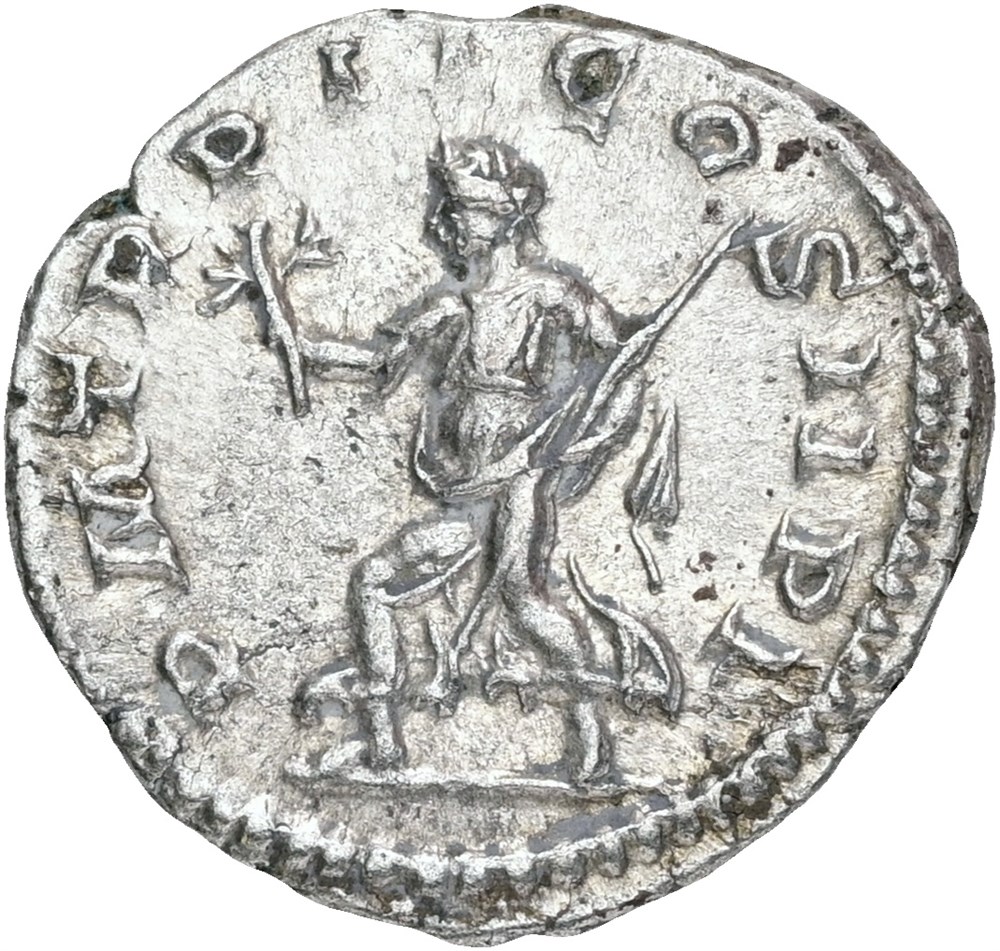 Denarius, 219. IMP ANTONINVS AVG, bust of Elagabalus right. P M TR P II COS II P P, Pax advancing left, branch upward in right hand, transverse scepter in left. Cleaned.