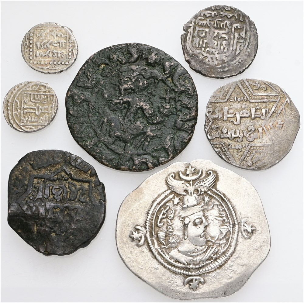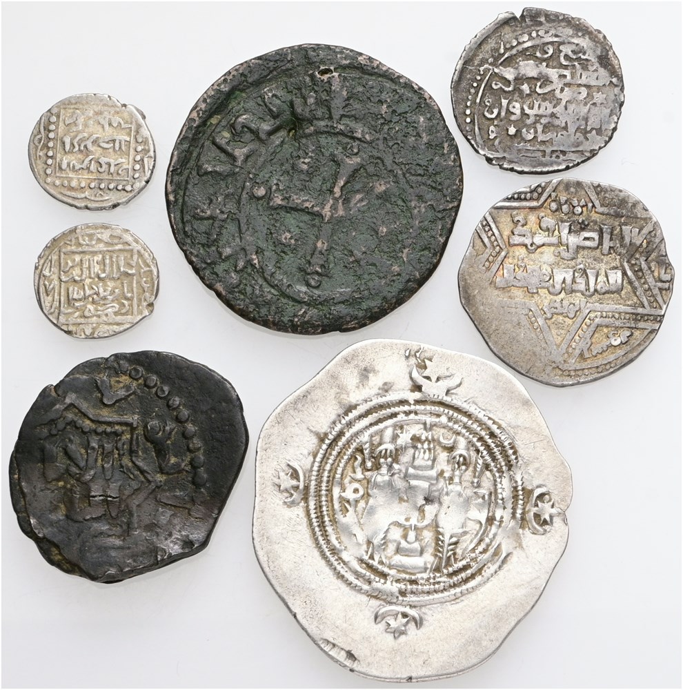 Coll. Ag and Ae, misc. types and dates, incl. Armenia, Hetoum I (1221-1271), Ayubide and Sassanian. (7)