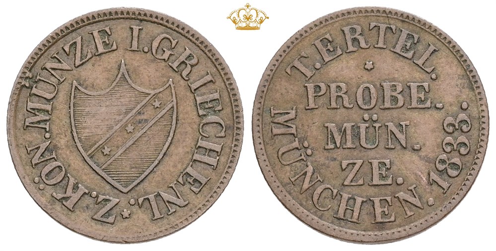 Lepton 1833, pattern, by T. Ertel, München, reeded edge, 16 mm.