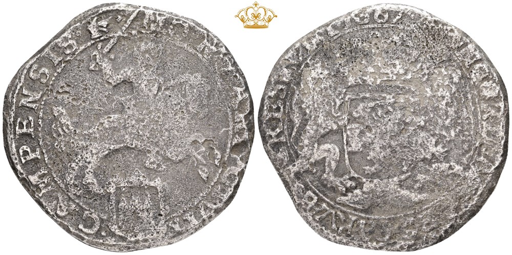 Ducaton 1667, "Zilverenrijder", salt water corrosion.